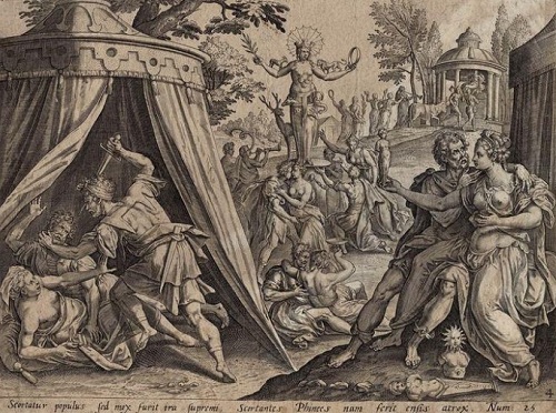 Preloved, Lukisan Maerten de Vos (1532 – 1603), menggambarkan dewi perempuan Baal Peor, dewa suku Moabserta perzinahan antara bani Israel terutama dari suku Simeon, dan pembunuhan akibat perzinahan.