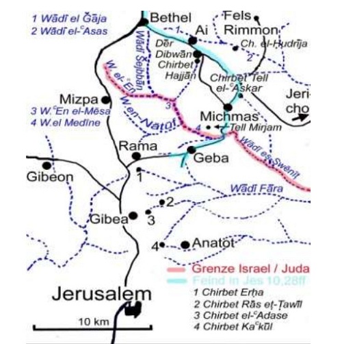 Das wissenshaftliche Bibellexikon im internet. Baesa menggerakkan pasukannya masuk ke wiyahan Yudea hinggake kota Rama (garis biru).