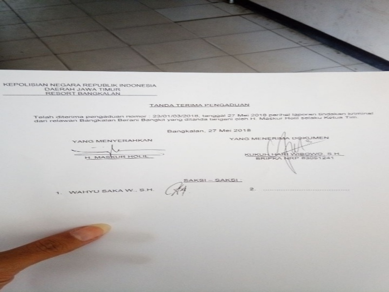 Oleh karena itu, Maskur kemudian melanjutkan laporannya kepada pihak kepolisian pada Ahad (27/5/2018) kemarin. Maskur menekankan bahwa laporan tersebut akan segera diproses dan segera dilakukan penyelidikan oleh pihak kepolisian.