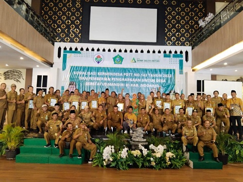 Sementara itu, Ulul Azmi, Koordinator Tenaga Pendamping Profesional (TPP) Kabupaten Sidoarjo menyampaikan bahwa jumlah desa bersatus mandiri di Kabupaten Sidoarjo sesuai Indeks Desa Membangun (IDM) Tahun 2022 berjumlah 73 Desa yang tersebar di 14 Kecamatan, yaitu Balongbendo 1 Desa, Buduran 2 Desa, Candi 10 Desa, Gedangan 4 Desa, Krembung 11 Desa, Krian 3 Desa, Porong 1 Desa, Sedati 3 Desa, Sukodono 12 Desa, Taman 3 Desa, Tanggulangin 2 Desa, Tulangan 2 Desa, Waru 17 Desa dan Wonoayu 2 Desa.