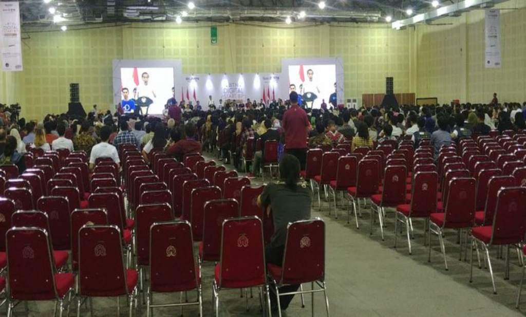 Hingga Presiden Jokowi hadir di lokasi acara pukul 09.00 WIB, masih ada sekitar 500 bangku di bagian belakang yang belum terisi.