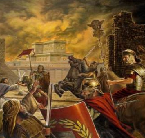 Teologiareformed.com Lukisan tentara Roma dipimpimpin Titus akan menjebol dan meruntuhkan tembok kota Yerusalem.