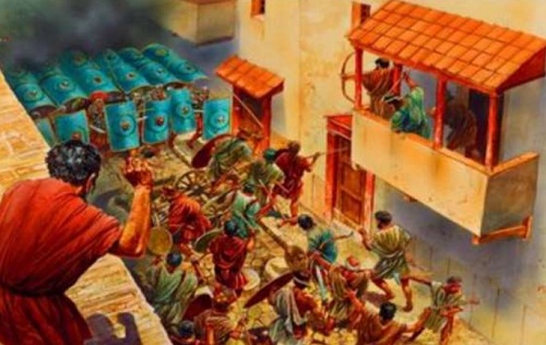 intisari.grid.id Lukisan garnisun roma di dalam kota diserang penduduk Yerusalem.