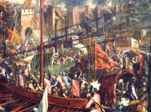 id.quora.com Lukisan ilustrasi, armada laut pasukan Heraclius disambut rakyat di dermaga Konstantinopel.