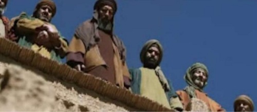 Kisahteladan354.blogspot.com ilustrasi foto, bani quraydzah di atas bentengnya yang sedang dikepung kaum muslim, ada yang membawa batu dan panah.