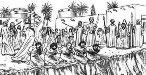 m.facebook.com Lukisan ilustrasi tentang para lelaki dewasa bani quraidzah di hukum penggal.