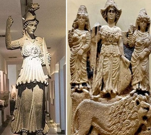 id.quora.com al-latta (sebelah kiri), al- latta diapit di tengah tengah oleh al-uzza dan al-manat, berhala utama penduduk Thaif yang dihancurkan oleh Abu Sofyan bin Harb dan al-Mughirah bin Syu’bah. Al-Latta mirip dengan berhala Yunani Athena, dewi perang. Al-Uzza sebanding dengan dewi Yunani Aphrodite atau dewi Romas Venus, dewi cinta dan kesuburan. Al-Manat adalah dewi keberuntungan yang menguasai waktu dan taqdir.