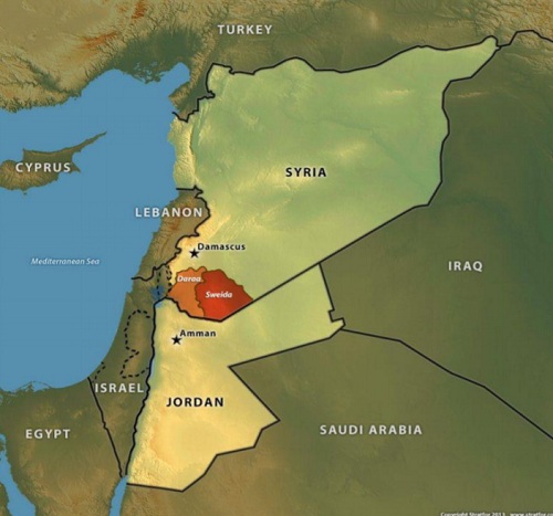 worldview.stratfor.com Wilayah Houran (warna orange dan merah), dekat Damsyk (Damaskus)