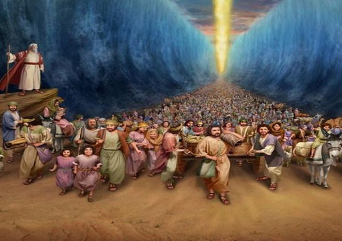 Tentu perintah seperti itu tidak dapat diduga oleh siapapun, bahkan tidak diduga oleh nabi Musa dan nabi Harun. Angin timur yang sangat keras menyibak air laut sehingga membentuk dua bagian gunungan air. Sedang dasar laut menjadi jalanan yang kering hingga bisa dilalui. Sejenak pemandangan tersebut menjadikan bani Israel terpana, terpesona dan tidak percaya. Namun kemudian terdengar teriakan Nabi Musa memanggil dan memerintahkan agar bani Israel menyeberang melalui jalan dari belahan laut tersebut (Qs Asy – Syu’ara 60 – 64, Qs Thaha 77). Mereka berjalan di tengah tengah gunungan air dengan heran, bercampur takut namun lama kelamaan menjadi kegembiraan luar biasa dan semangat mereka menjadi membara.