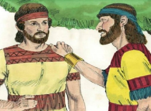 Saul kemudian menyuruh memanggil Dawud yang datang dengan menenteng kepala Saul, dan meminta Dawud agar tetap bergabung dalam balatentara bani Israel. Sedang Yonathan mengikat janji dengan Dawud karena Yonathan mengasihi Dawud. Bahkan Yonathan kemudian memberikan baju perangnya, pedang dan panahnya kepada Dawud.