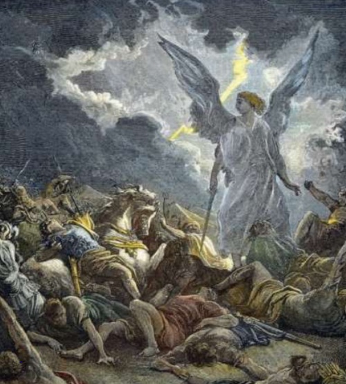Pixels.com Lukisan tentang malaikat mencabut nyawa tentara Asyur sehinggahampir semuanya tiba tiba mati tanpa diketahui sebabnya.