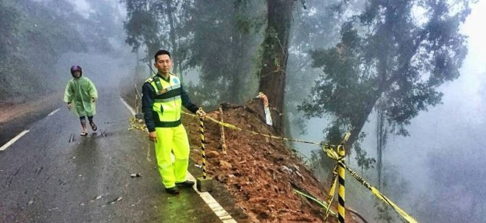 Akibat Longsor, Jalur Puncak Bogor Selasa Pagi Ini Masih Ditutup. Masih ada jalan yang rawan amblas