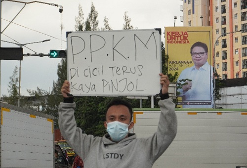 Pemerintah jangan hanya razia masker, bubarkan pedagang kecil, coba razia kalangan atas yang melanggar PPKM dan “Menyebut ppkm ini sebagai kepanjangan dari peraturan-peraturan konglo merat”, tulis isi poster yang di bentangkan para KAMMI UNISMA di samping lampu merah Revo Town.