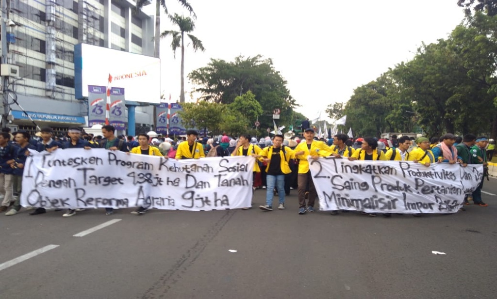 Jakarta, Zonasatu News –Tanggal 24 September, kemarin diperingati sebagai Hari Tani Nasional. Hal ini disambut oleh ribuan massa dari Aliansi BEM SI Wilayah Jabodetabek dan Banten dalam Aksi Tugu Tani sebagai bentuk kritikan bahwa pertanian Indonesia belum berdaulat.