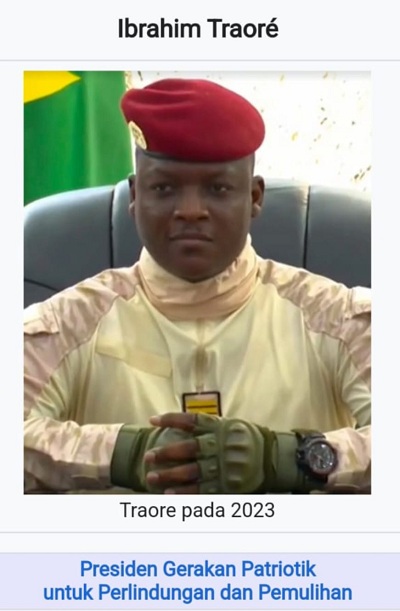 “Ibrahim Traore berpangkat *Kapten, Presiden termuda yang disegani dunia, khususnya Barat. Dia menjadi populer karena sikap dan kebijakan nasionalismenya yang heroik, membangunkan semangat nasionalisme-Pan-Afrika”