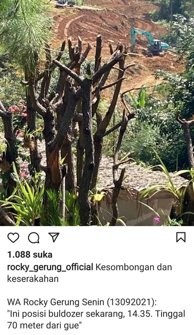 “Ada [alat berat] di lokasi belakang rumah Rocky,” kata Haris seperti dikutip CNNIndonesia.com melalui pesan singkat, Senin (13/9).