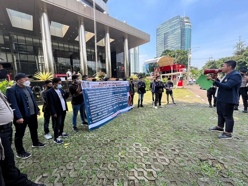 Aliansi Mahasiswa Universitas Negeri Surabaya (UNESA) unjuk rasa depan gedung KPK pada hari Jum’at (27/05/22).