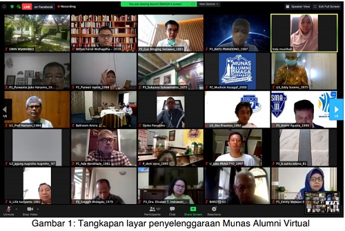 ZONASATUNEWS.COM, SOLO – Alumni SMA Negeri 3 Surakarta sukses menyelenggarakan Musyarawah Nasional (Munas) Alumni Virtual Pertama di Indonesia yang dilaksanakan pada Sabtu,3 Oktober 2020 melalui Zoom Meeting yang diikuti oleh 38 Angkatan.
