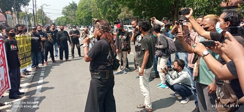 ”Jika tuntutan ini tidak segera ditindak, kami FRMJ akan lakukan demo lagi ke poltda Jatim sampai tersangka ditangkap,” ujar Fatah di sela aksi unjuk rasa.