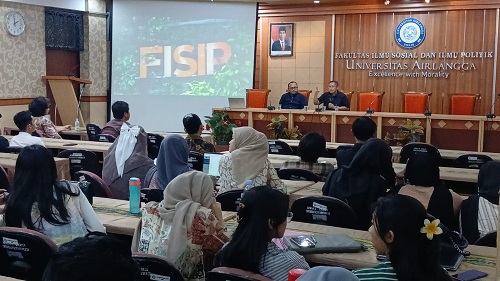 Anas yang juga pernah mengenyam kuliah S1 di Fisip Unair ini menjelaskan kepada mahasiswa maupun beberapa dosen yang hadir tentang kondisi perpolitikan saat ini di Indonesia.