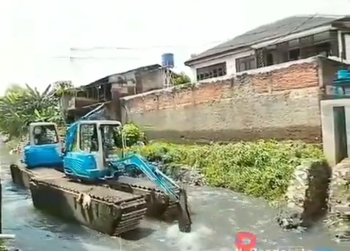 Ada 3 alat berat jenis amphibious mini dan eskavator yang dikerahkan untuk mengeruk Kali Mampang.