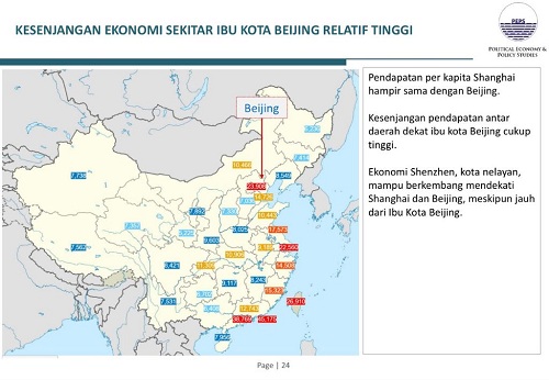 Sebagai contoh di China saja, lanjut Anthony, ketimpangan sosial antara provinsi di sekitar ibukota Beijing dengan ibukota Beijing ternyata sangat tinggi. Sedangkan provinsi yang jauh dari ibukota Beijing, misalnya Guangdong, bahkan lebih sejahtera dari ibukota Beijing.
