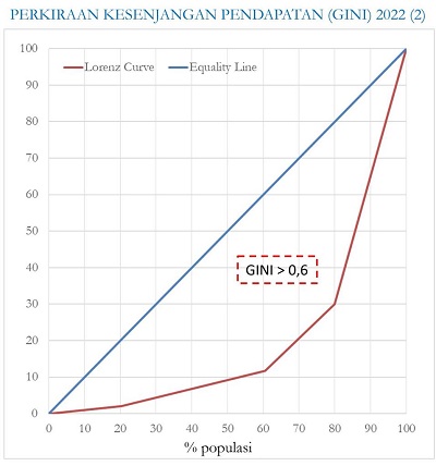 Tetapi, lanjutnya, kalau berdasarkan PENDAPATAN, ketimpangan PENDAPATAN 2022 bisa capai lebih dari 0,6: rawan konflik sosial.
