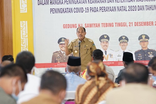 ZONASATUNEWS.COM, TEBINGTINGGI-SUMUT –Satgas Penanganan Covid 19 Kota Tebingtinggi gelar pertemuan dengan Tokoh agama dan tokoh Masyarakat, membahas masalah antisipasi keamanan dan antisipasi Covid-19, Senin (21/12) di Gedung Hj Sawiyah Jalan Sutomo kota Tebingtinggi.