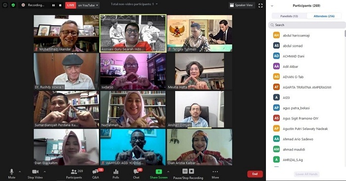Jumlah peserta webinar dilihat dari pendaftar mencapai 1.930 dan live disiarkan melalui chanel youtube Asosiasi Guru Sejarah Indonesia dan media online teraju.id (anggota AMSI/Asosiasi Media Online Seluruh Indonesia berkantor pusat di Kota Pontianak-Kalimantan Barat).