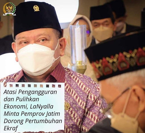 ZONASATUNEWS.COM, SURABAYA – Ketua DPD RI, AA LaNyalla Mahmud Mattalitti, meminta Pemerintah Provinsi Jawa Timur mendorong ekonomi kreatif sebagai salah satu kekuatan dan sumber pertumbuhan ekonomi.