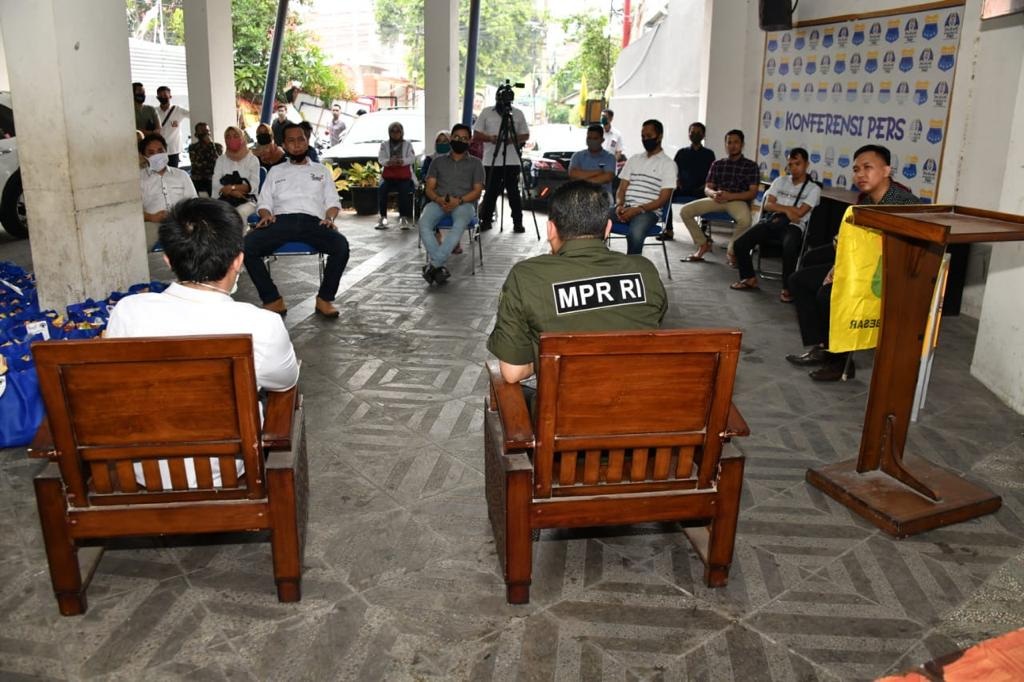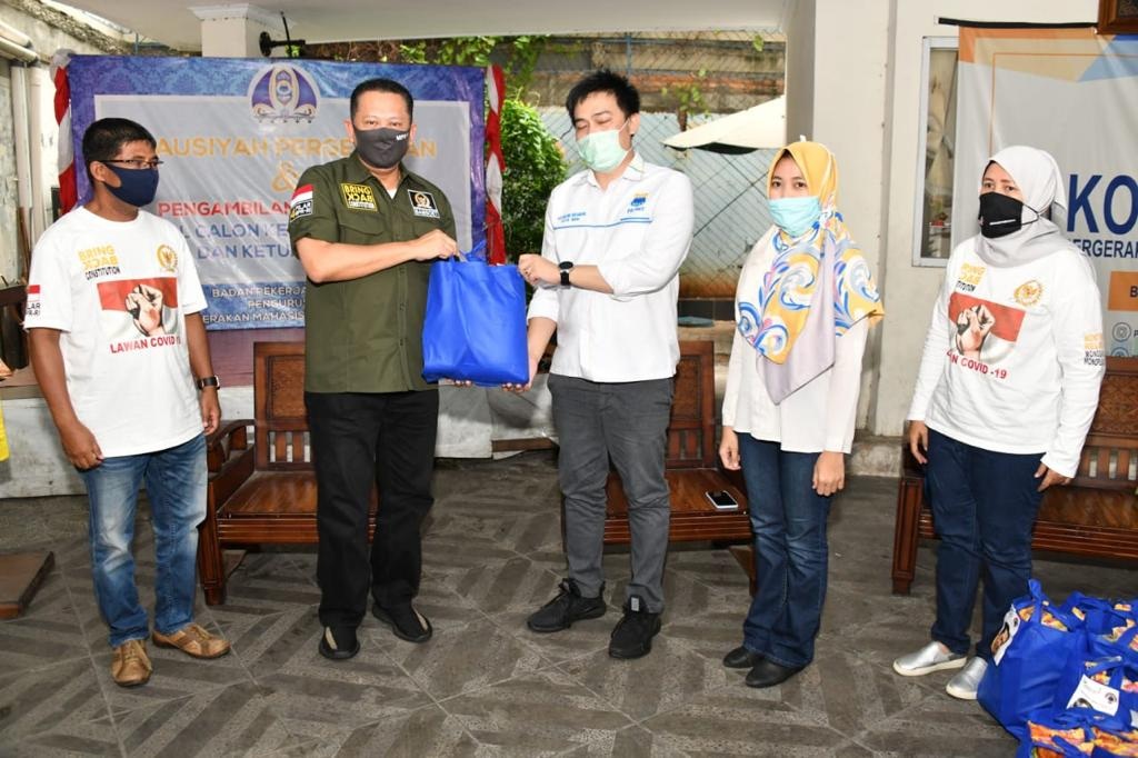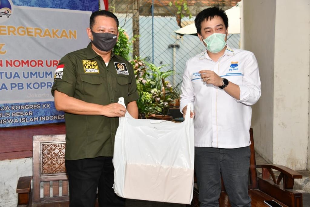 ZONASATUNEWS.COM, JAKARTA – Ketua MPR RI Bambang Soesatyo bersama Gerakan Keadilan Bangun Solidaritas (GERAK BS) dan Relawan 4 Pilar memberikan bantuan sosial berupa paket sembako kepada Pergerakan Mahasiswa Islam Indonesia (PMII). Untuk kemudian dibagikan kepada mahasiswa anggota dan kader PB PMII yang merelakan diri tak mudik ke kampung halaman, demi menekan penyebaran virus Covid-19.