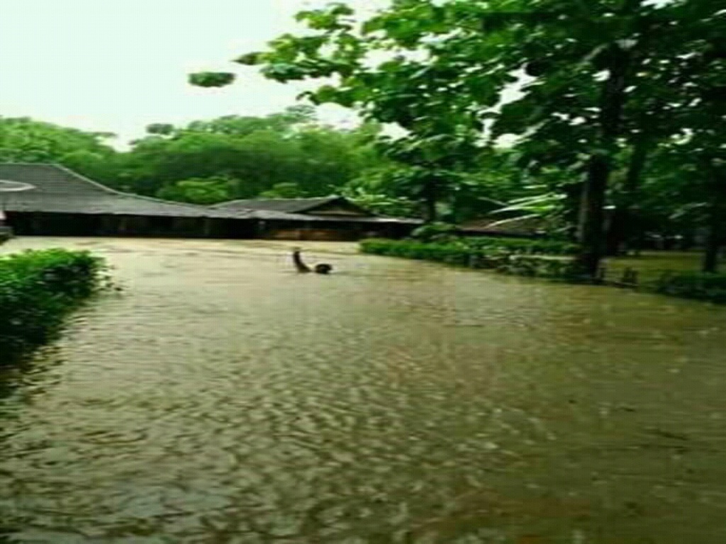 b. Material : rumah, sawah, puskesmas, sekolah dan jalan terendam banjir dengan ketinggian 50 s.d 150 Cm