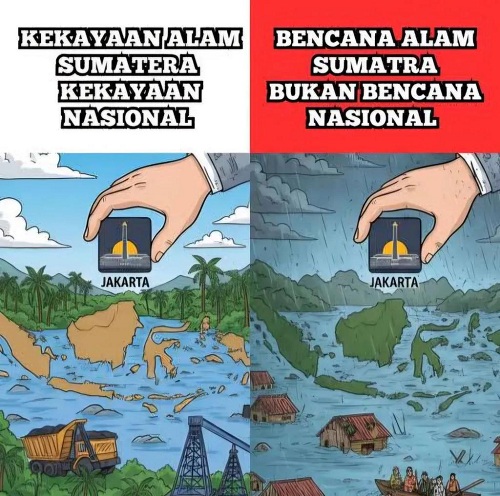 Ironi yang paling sakit dirasakan oleh masyarakat adalah diskriminasi kebijakan: Kekayaan alam Sumatera (tambang, kayu, dll) dianggap sebagai kekayaan nasional, namun penderitaan akibat bencananya dianggap sebagai beban daerah dan masalah lokal.