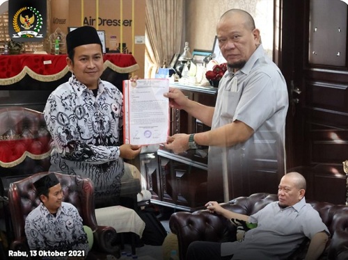 ZONASATUNEWS.COM— Dalam masa reses, Ketua DPD RI AA LaNyalla Mahmud Mattalitti menerima aspirasi dari Pengurus Badan Khusus Forum Honorer Persatuan Guru Republik Indonesia (FH PGRI) Kabupaten Jember, Rabu (13/10/2021).