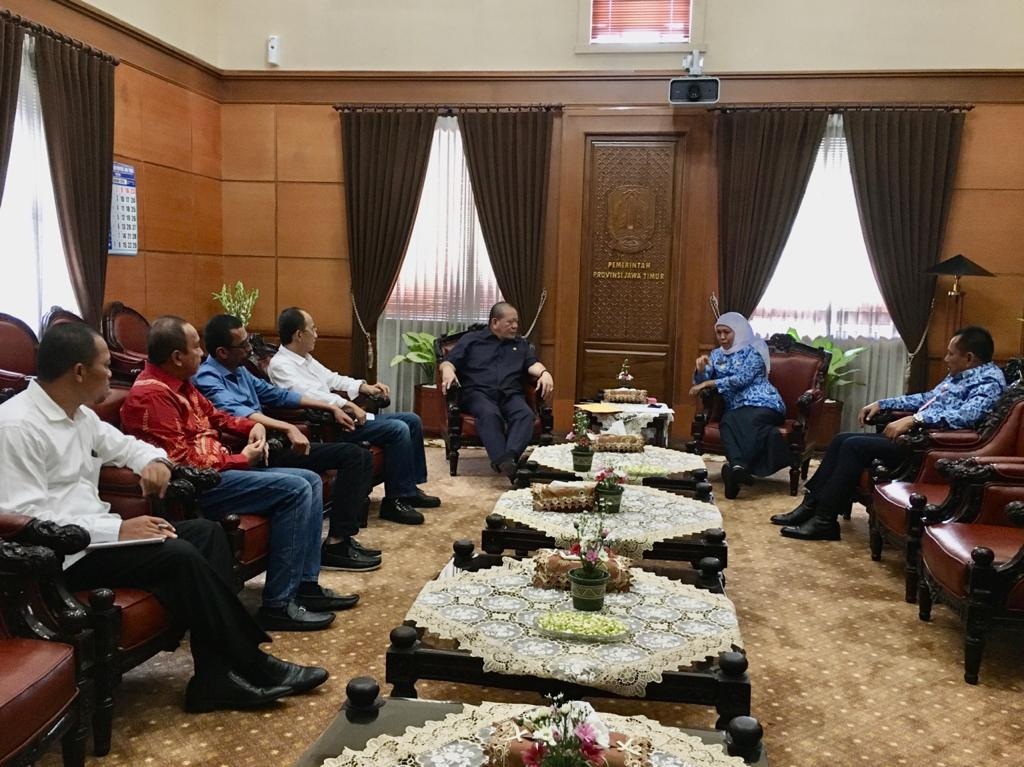 “DPD sebagai wakil daerah siap support, apalagi untuk percepatan pembangunan,” ujar LaNyalla kepada Khofifah di ruang kerja Gubernur Jatim di Surabaya, Senin (17/2/2020).