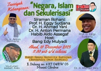 Dalam keterangan tertulis, Ketua Umum BroNies Yusuf Blegur mengatakan, kegiatan bertajuk Tausiah Kebangsaan: Negara, Islam dan Sekulerusasi itu sejatinya juga menjadi bagian dari gerakan perubahan yang kian hari menjadi tuntutan rakyat.