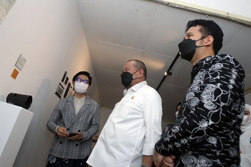 Ketua DPD RI AA LaNyalla Mahmud Mattalitti memberikan apresiasi terhadap sekelompok anak muda yang bersemangat menunjukkan karya seni kontemporer mereka dengan membuka Art Exhibition Le Musée di Jalan DR Wahidin Surabaya, Minggu (7/11/2021).