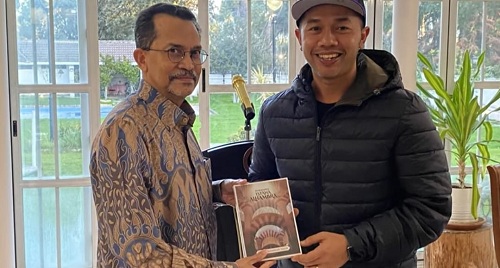 Dubes Muhammad Najib memberikan cinderamata berupa buku novel berjudul “Diberanda Istana Alhambra” karyanya.
