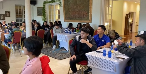 “Bagi saya diplomat yang sebenarnya ya saudara ini. Yang bisa mngibarkan merah putih diluar negeri itu adalah kalau ada Presiden hadir dan kalau ada yang juara. Kalau Dubes tidak bisa menaikkan bendera merah putih,” kaa Dubes Najib yang disambut tepuk tangan meriah.