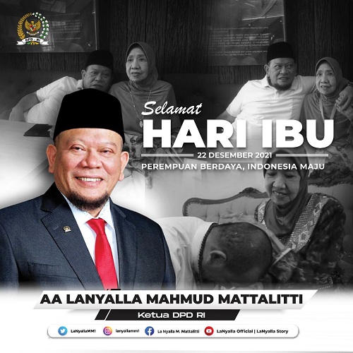 Untuk sosok yang selalu bersinar dalam hidup kita. Terima kasih atas semua kasih sayang dan telah menjadi penerang dalam kehidupan. Selamat Hari Ibu untuk para ibu hebat diseluruh Indonesia. AA LANYALLA MAHMUD MATTALITTI KETUA DPD RI