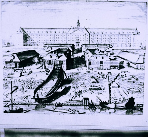 Litho atas itu tahun 1700-an, tak ada kasteel. Juga galangan kapal tak ada, yang terlihat prau jukung lagi parkir.