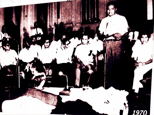 Pada photo atas pertemuan sejumlah aktivis di Istana atas undangan Presiden Suharto tahun 1970, tampak Pak Harto membelakangi lensa berhadapan dengan sejumlah aktivis a.l Darojatun, Buyung Nasution, Mar’ie Muhamad, Nono Makarim, Haryadi Dharmawan (berdiri), dan RS. Pertemuan membahas soal korupsi.
