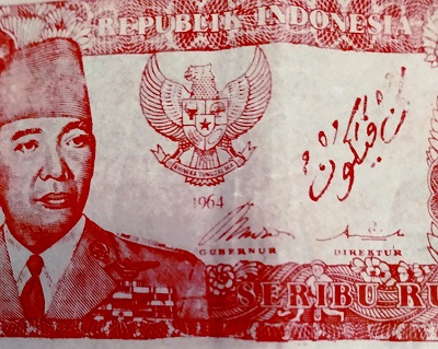 Saya tidak sadar di jaman Orla pernah beredar uang pecahan Rp 10.000 dengan desain kalimah Kun fayakun, jadi maka jadilah. Lihat photo di atas.