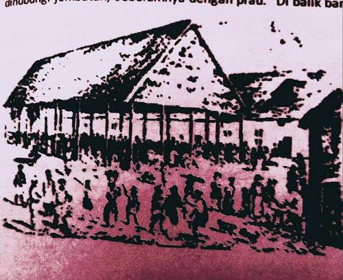 1. Pasar Majakatera, pindahan Pasar Pisang yang dibakar pengacau, litho atas.