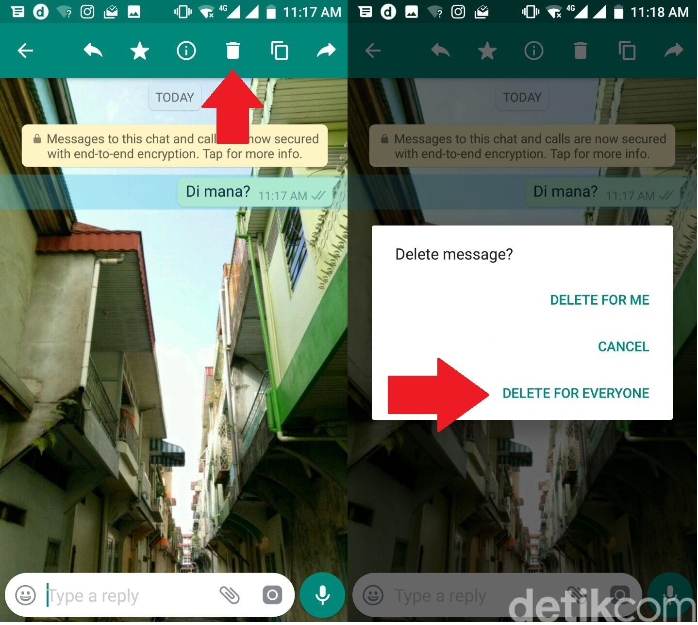 Nah menghapus untuk semua orang menjadi fitur baru WhatsApp. Dengan kemampuan ini kita dapat menghapus pesan yang telah dikirim baik di ponsel kita maupun ponsel lawan bicara.