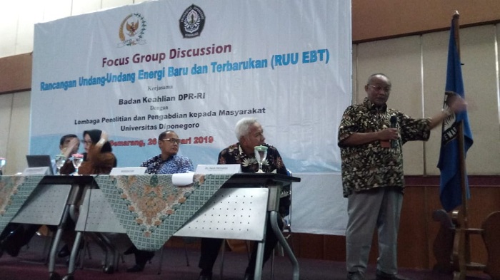 Dalam focus group discussion (FGD) Rancangan Undang-undang Energi Baru dan Terbarukan (RUU EBT) yang diadakan oleh Universitas Diponegoro (UNDIP), hari Senin, 25 Pebruari 2019, Wakil Ketua DPR RI Agus Hermanto mengungkapkan, Indonesia telah memiliki UU Kelistrikan, UU Migas, dan UU Panas Bumi. Sehingga RUU EBT ini dinilai untuk melengkapi undang-undang yang telah ada.