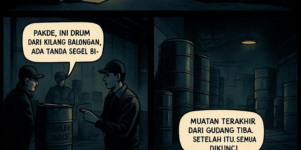 Dermaga tua di pesisir utara itu tampak seperti bangunan mati jika dilihat dari jauh—hanya bayangan crane berkarat, lampu-lampu redup, dan suara ombak menghantam tiang beton. Tapi di balik kegelapan, operasi besar sedang berlangsung. Truk-truk tangki berderet, mesin diesel menderu pelan, dan para pekerja bayangan bergerak seperti hantu, memindahkan cairan hitam dari perut kapal ke pipa-pipa darat tanpa satu pun catatan resmi.