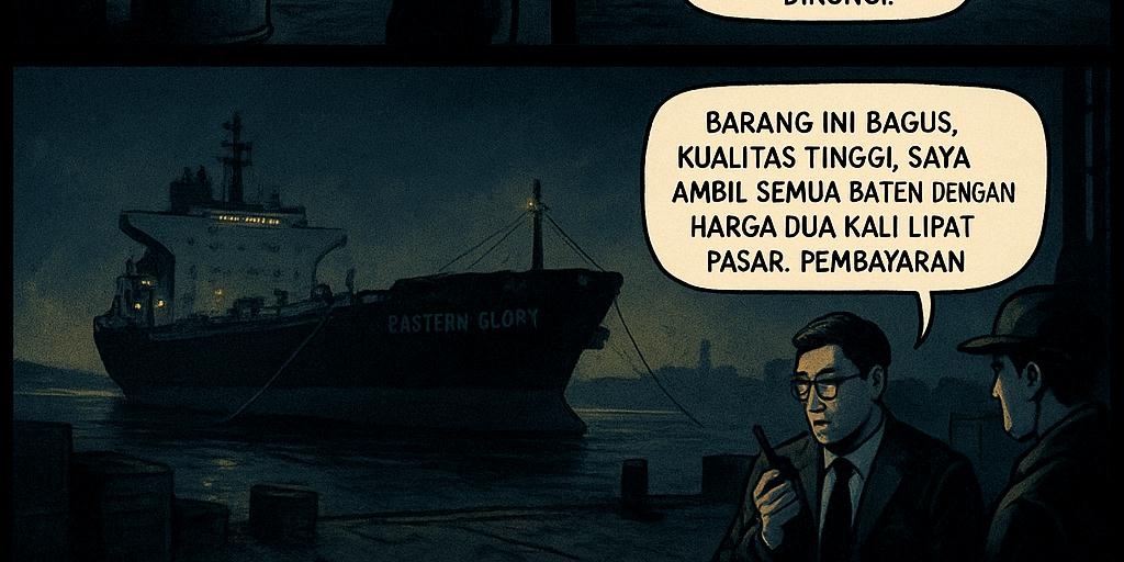 Fajar baru saja merekah di ufuk timur ketika langit Laut Jawa disapu cahaya oranye pucat. Ombak memantul lembut di buritan kapal Eastern Glory, sebuah kapal tanker berbendera asing yang tubuhnya tampak megah namun menyimpan rahasia kelam di perut baja raksasanya.