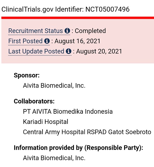 Uji klinis fase 2 telah dilaporkan dan dimuat di Perpustakaan Kedokteran Nasional AS dengan nomor identifikasi NCT05007496.