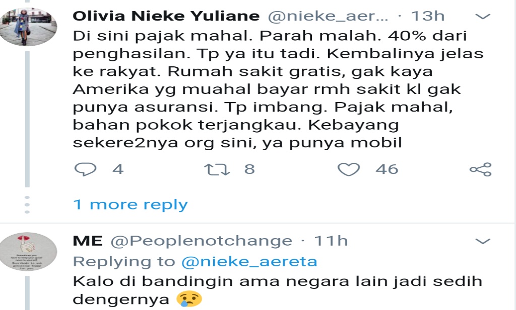 ME membalas tuit Yuliane, “Kalau dibanding ama negara lain jadi sedih dengernya”.